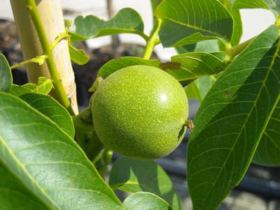 Juglans regia 'Coenen' vrucht begin juli